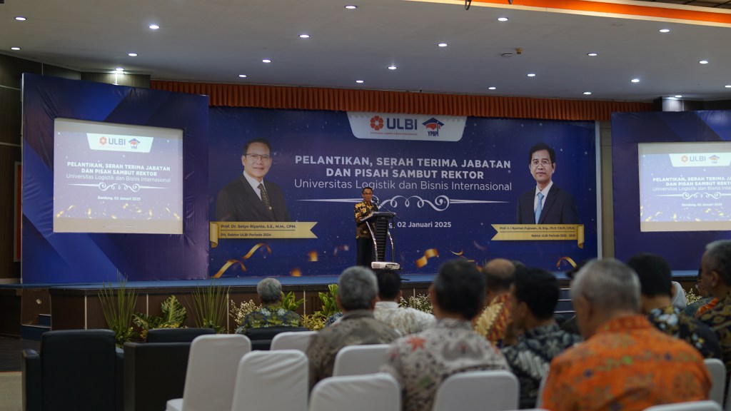 Bandung – Universitas Logistik dan Bisnis Internasional (ULBI) melantik Prof. I Nyoman Pujawan sebagai rektor baru untuk periode 2025-2029. Sebelumnya, Prof. Nyoman menjabat sebagai dekan di Institut Teknologi Sepuluh Nopember (ITS). Ia menggantikan Prof. Setyo Riyanto, yang sebelumnya menjabat sebagai Plt Rektor ULBI. Acara pelantikan ini dihadiri oleh Direktur Utama Pos Indonesia Faizal R. Djoemadi, Ketua Yayasan Pendidikan Bhakti Pos Indonesia Kiagus Muhammad Amran, manajemen Pos Indonesia, sivitas akademika ULBI, dan tamu undangan lainnya.